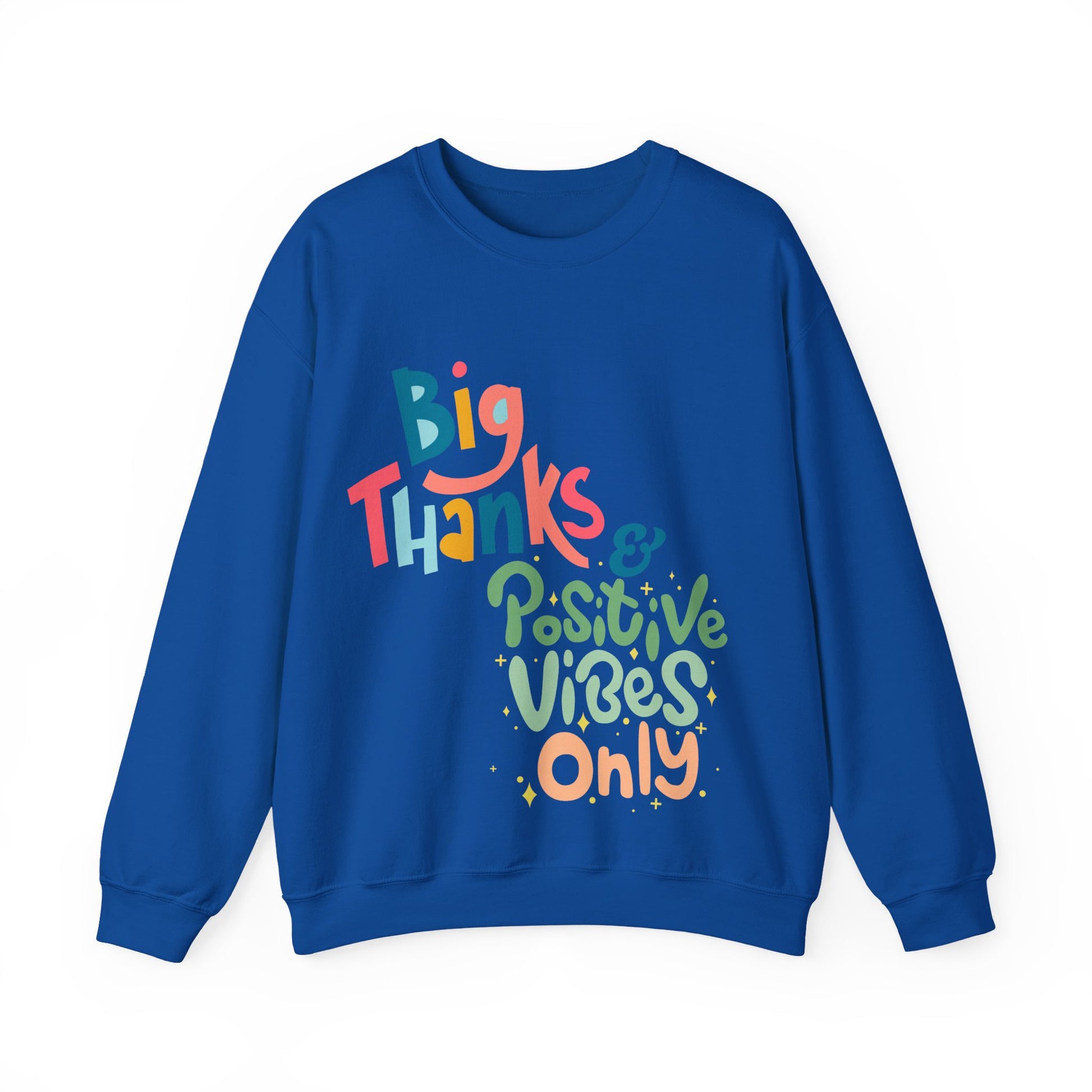 Spread positivity and warmth with the Big Thanks & Positive Vibes Crewneck Sweatshirt. Designed to keep you cozy while sharing uplifting messages, this sweatshirt is perfect for casual outings, celebrations, or as a thoughtful gift for friends and loved ones. Its comfortable fit and cheerful design make it an everyday favorite for spreading good vibes wherever you go.
