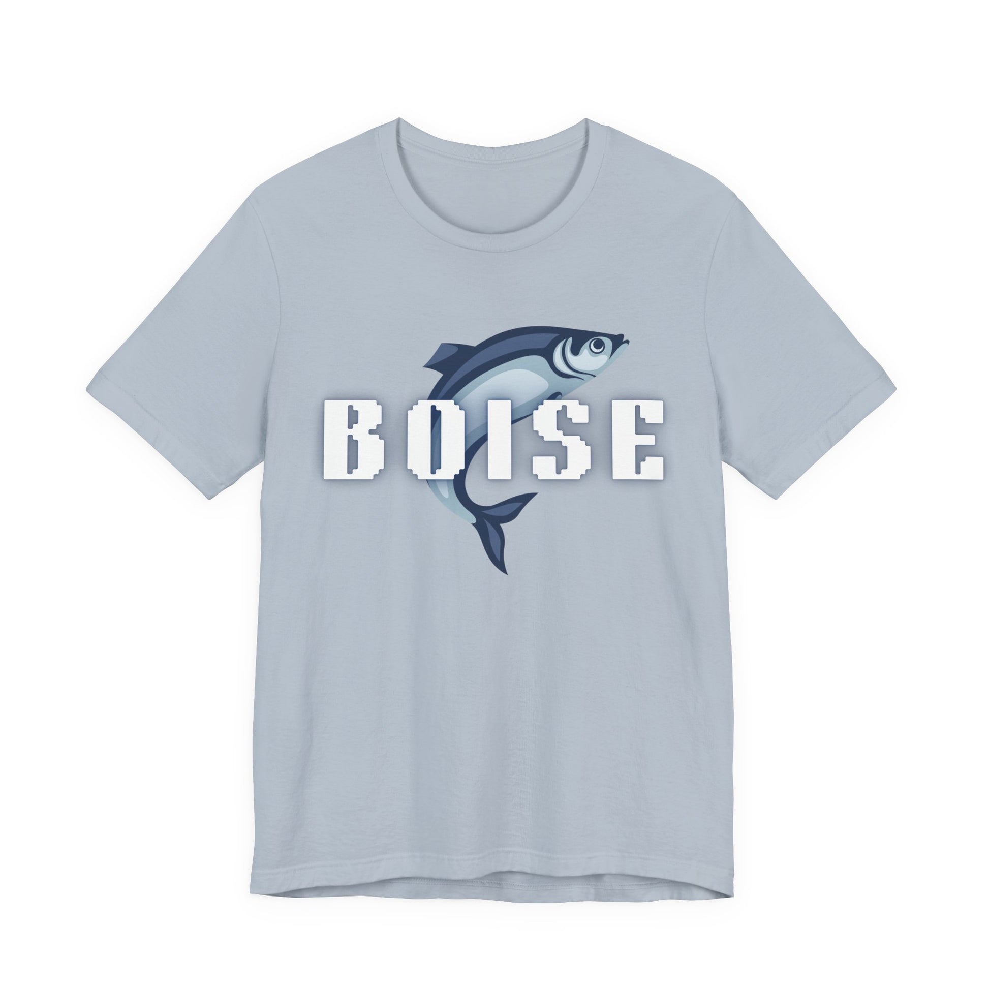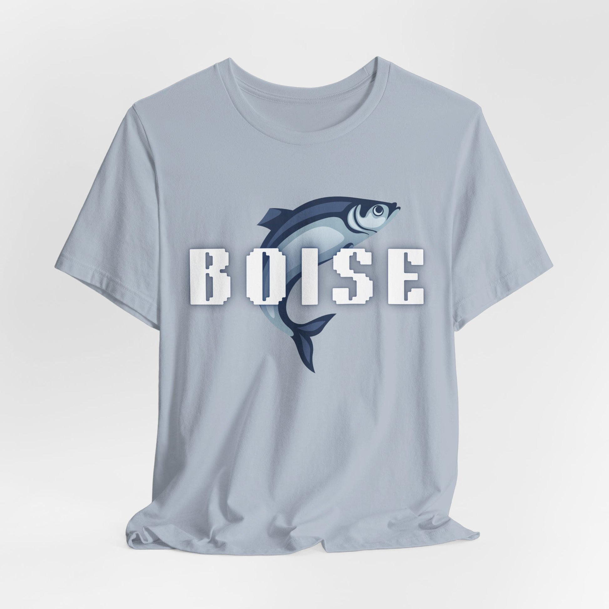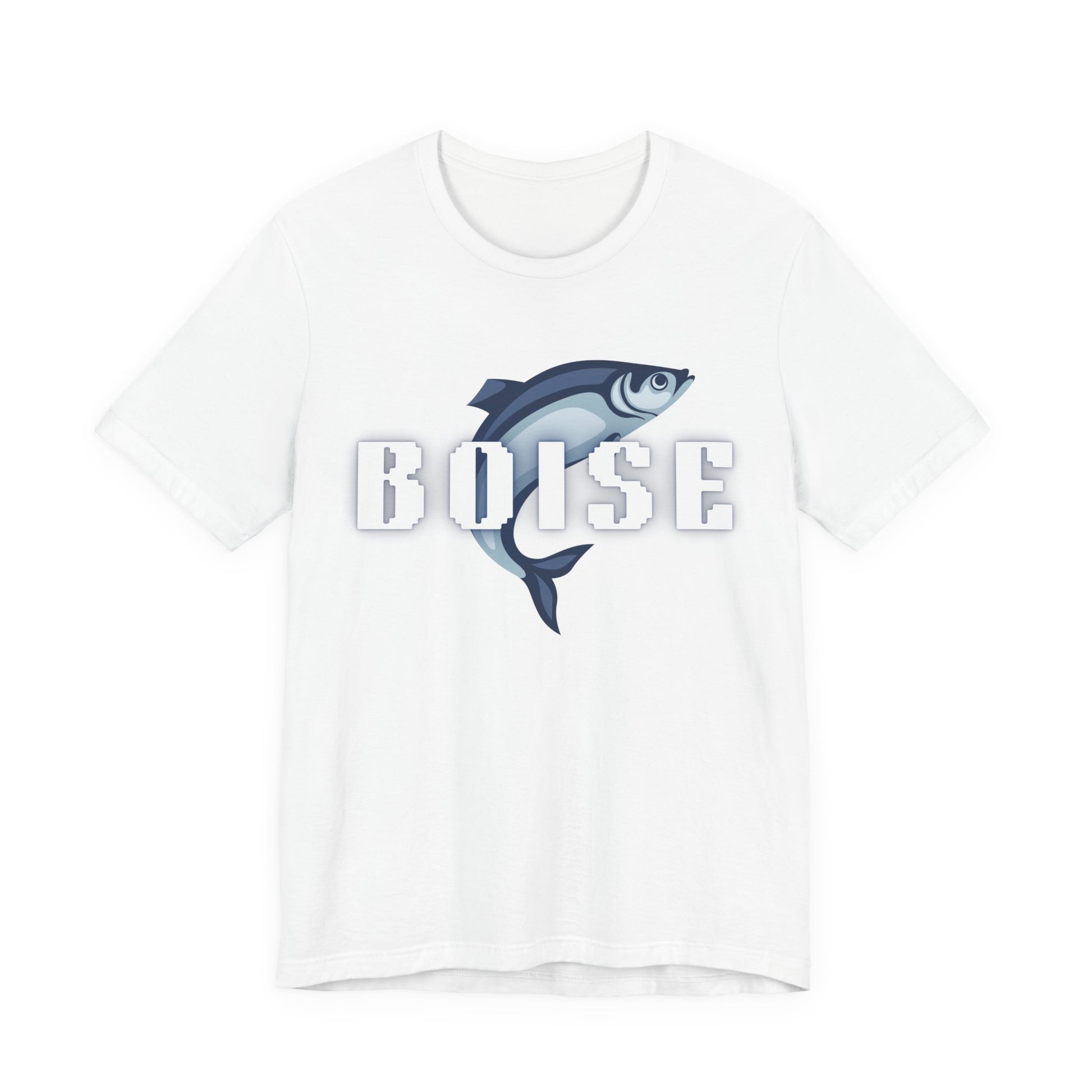 Lightweight, breathable, and built for movement — this Boise fish tee brings quiet confidence to every day. Soft Airlume combed and ring-spun cotton feels cool against the skin while a bold, retro-inspired Boise wordmark pairs with a stylized salmon/steelhead illustration for an outdoorsy, river-town vibe. Wear it on weekend river runs, casual meet-ups, or layered under a flannel for evenings by the fire. The clean white canvas keeps the design crisp and wearable year-round, while thoughtful construction details (side seams, ribbed collar, shoulder tape) keep the silhouette neat wash after wash.