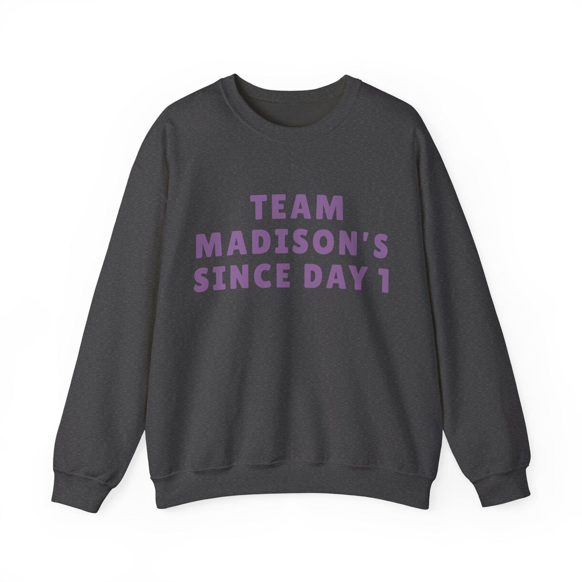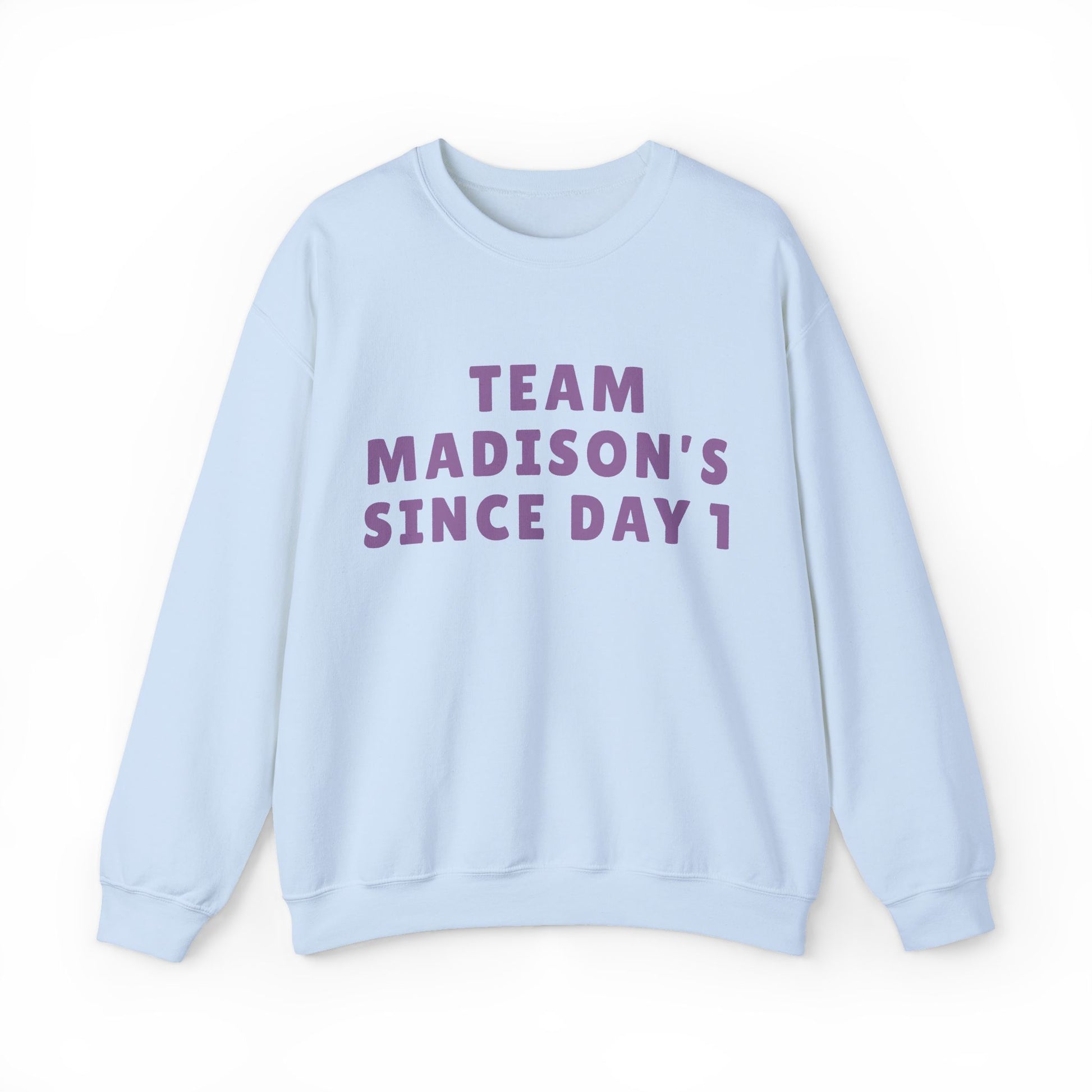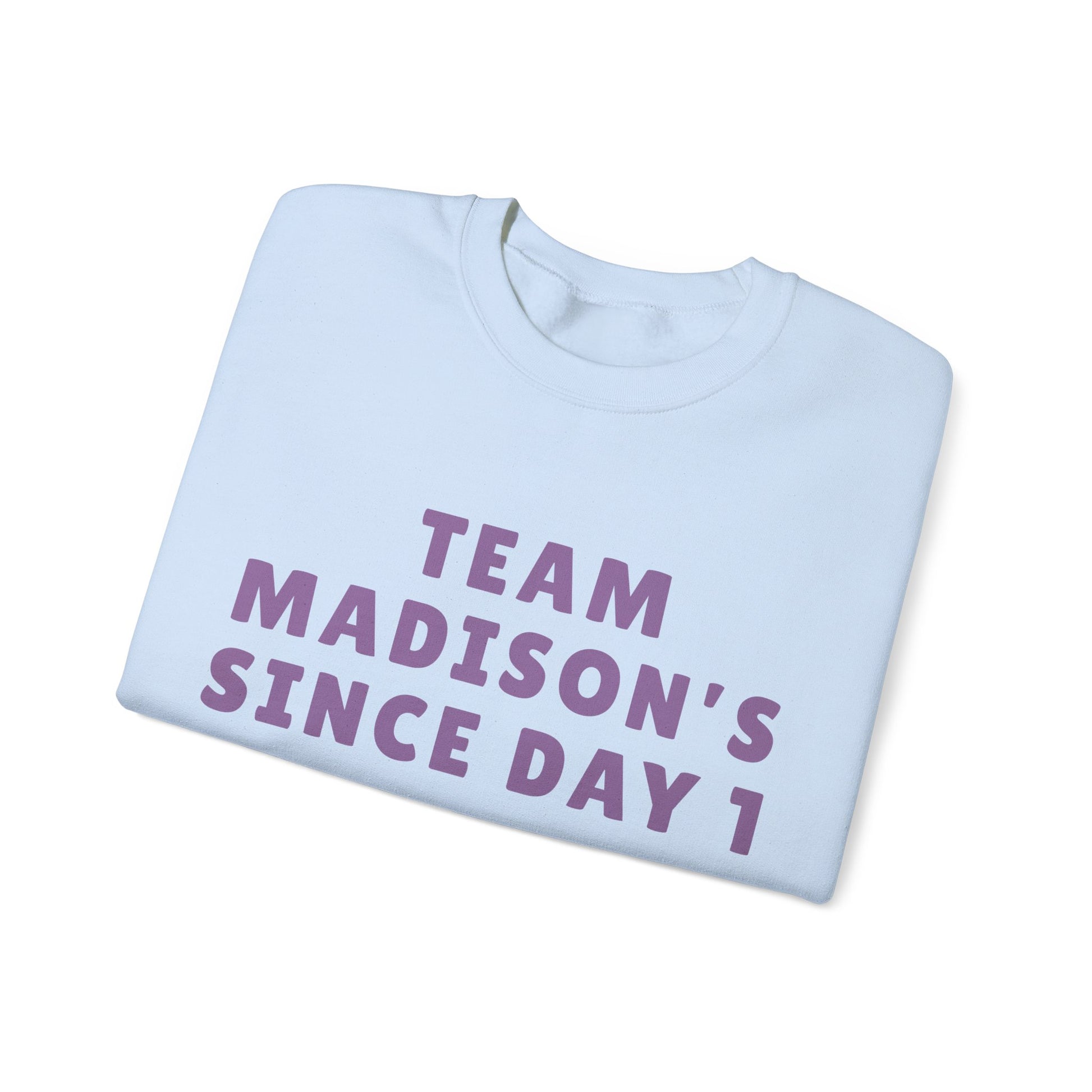 Show your loyalty in effortless style with the Madison Team Madison Since Day 1 Unisex Crewneck Sweatshirt. Featuring embroidered style lettering across the chest, this design feels personal, warm, and quietly bold. The statement reads like a badge of longtime support, making it perfect for movie nights, early morning coffee runs, relaxed afternoons with friends, or layering into your everyday rotation.