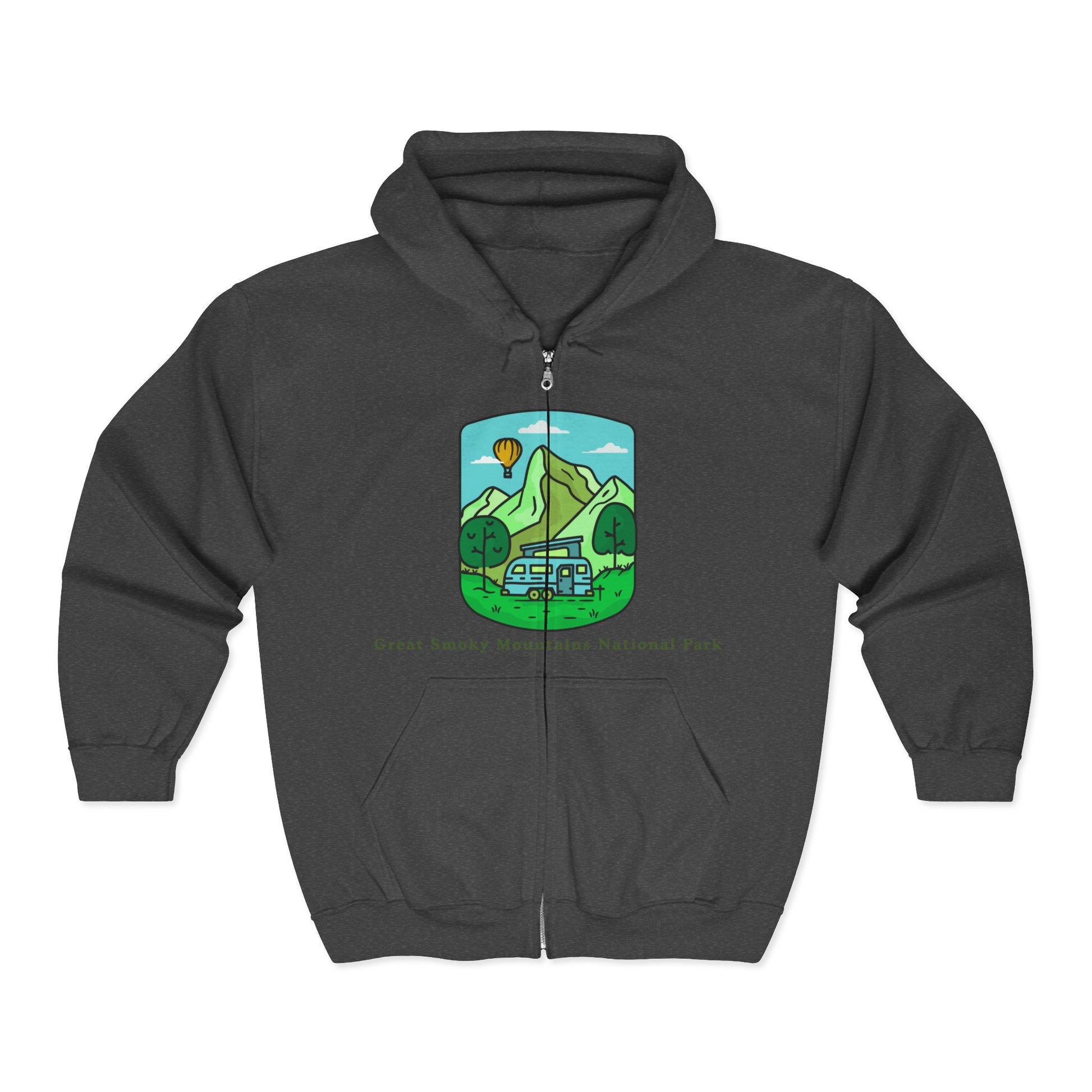 Celebrate the beauty of the Great Smoky Mountains with this cozy zip-up hoodie. Perfect for hiking, camping, or exploring the outdoors, it combines comfort with rugged style. Its durable fabric and full-zip design make it an ideal layer for adventures, while the design makes it a thoughtful gift for nature lovers and national park enthusiasts.