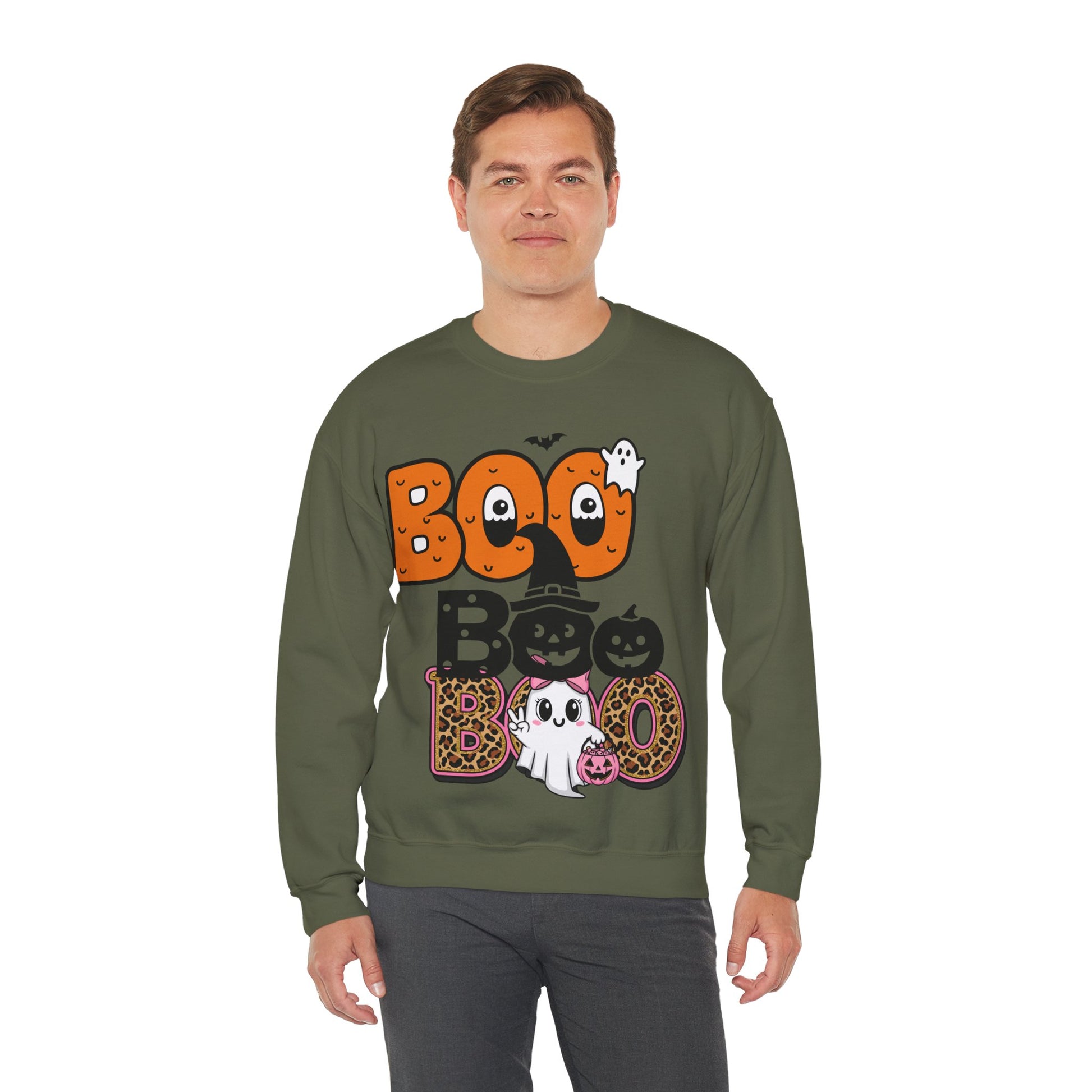 Add some festive fun to your fall wardrobe with the Halloween Boo Crewneck Sweatshirt. Featuring a playful ghost-inspired “BOO” design, this cozy sweatshirt is perfect for trick-or-treating, haunted house visits, or simply enjoying spooky season in comfort. A great choice for both casual wear and Halloween celebrations.