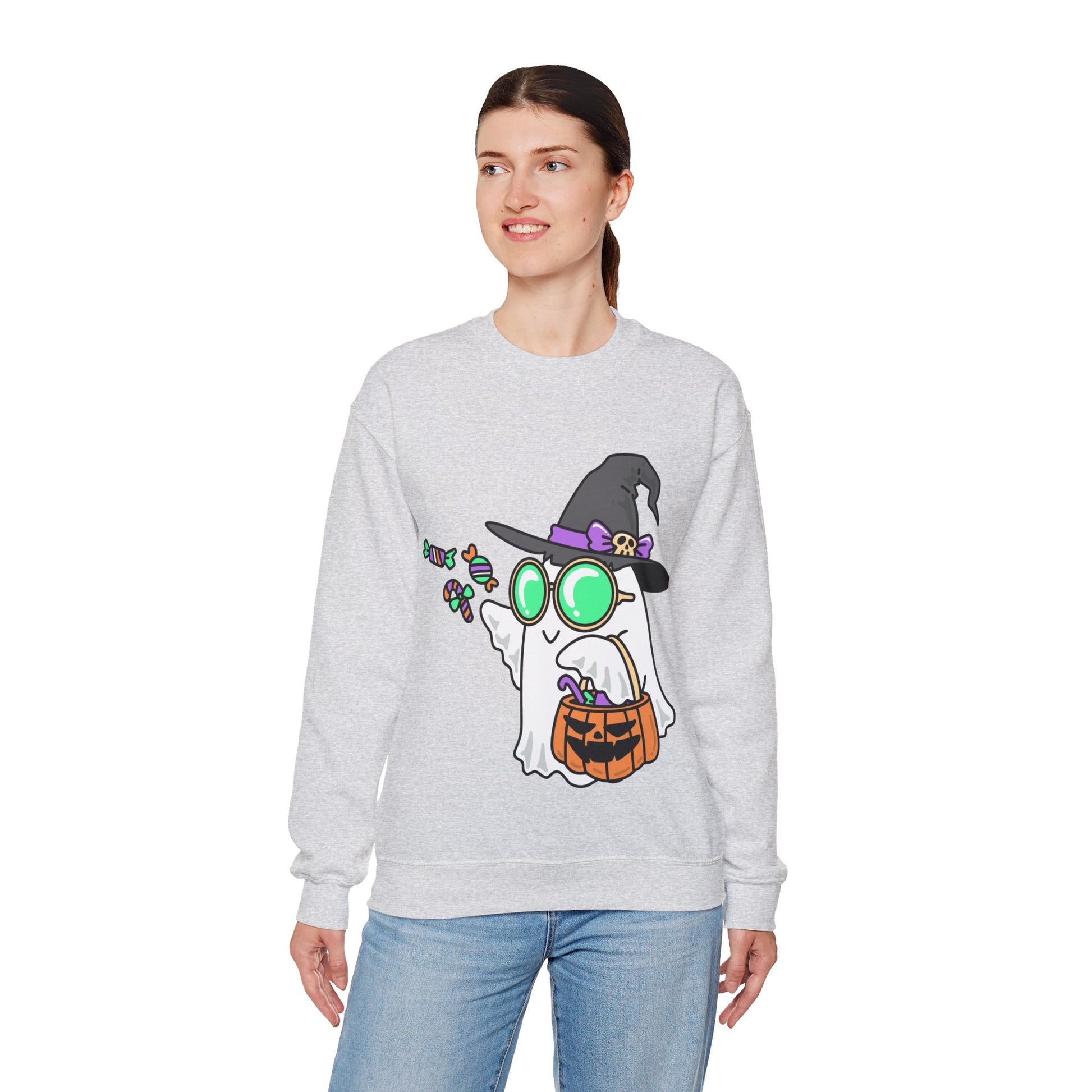 Bring playful spooky vibes to your wardrobe with the Halloween Ghost Crewneck Sweatshirt. Designed with a fun spirit graphic, this cozy sweatshirt is perfect for fall festivities, trick-or-treating, or casual Halloween celebrations. Whether worn as a light costume alternative or just to enjoy the season, it’s a stylish and comfortable way to show your festive spirit.