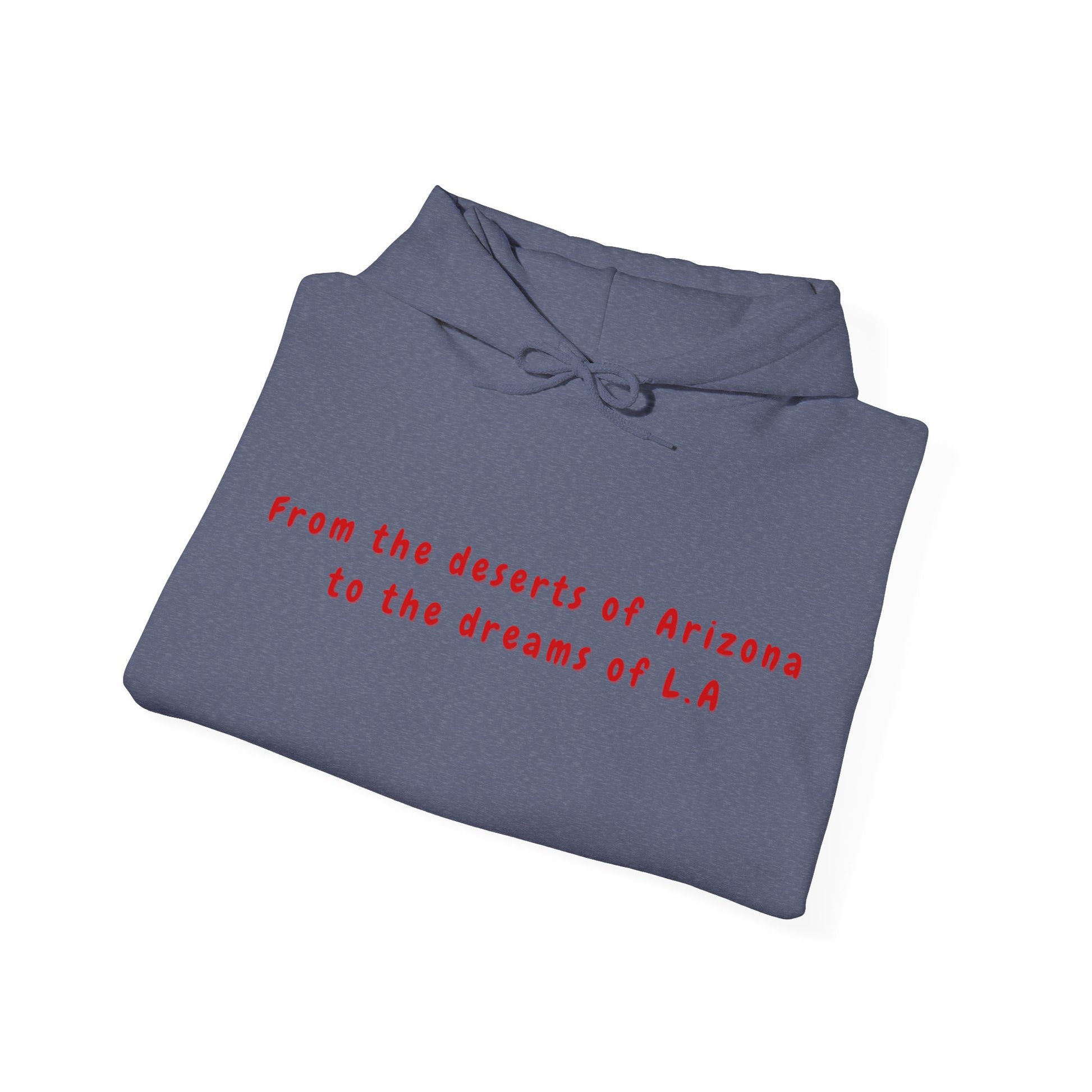 Embark on a journey in comfort with the Inspirational Hoodie: From the Deserts of Arizona to the Dreams of LA. Perfect for travel enthusiasts, casual wear, or gifting, this cozy sweatshirt combines warmth with inspiring, adventure-themed design. Made from a soft cotton-poly blend, it provides lasting comfort and durability, making it an ideal layer for everyday wear, travel, or thoughtful gifts.
