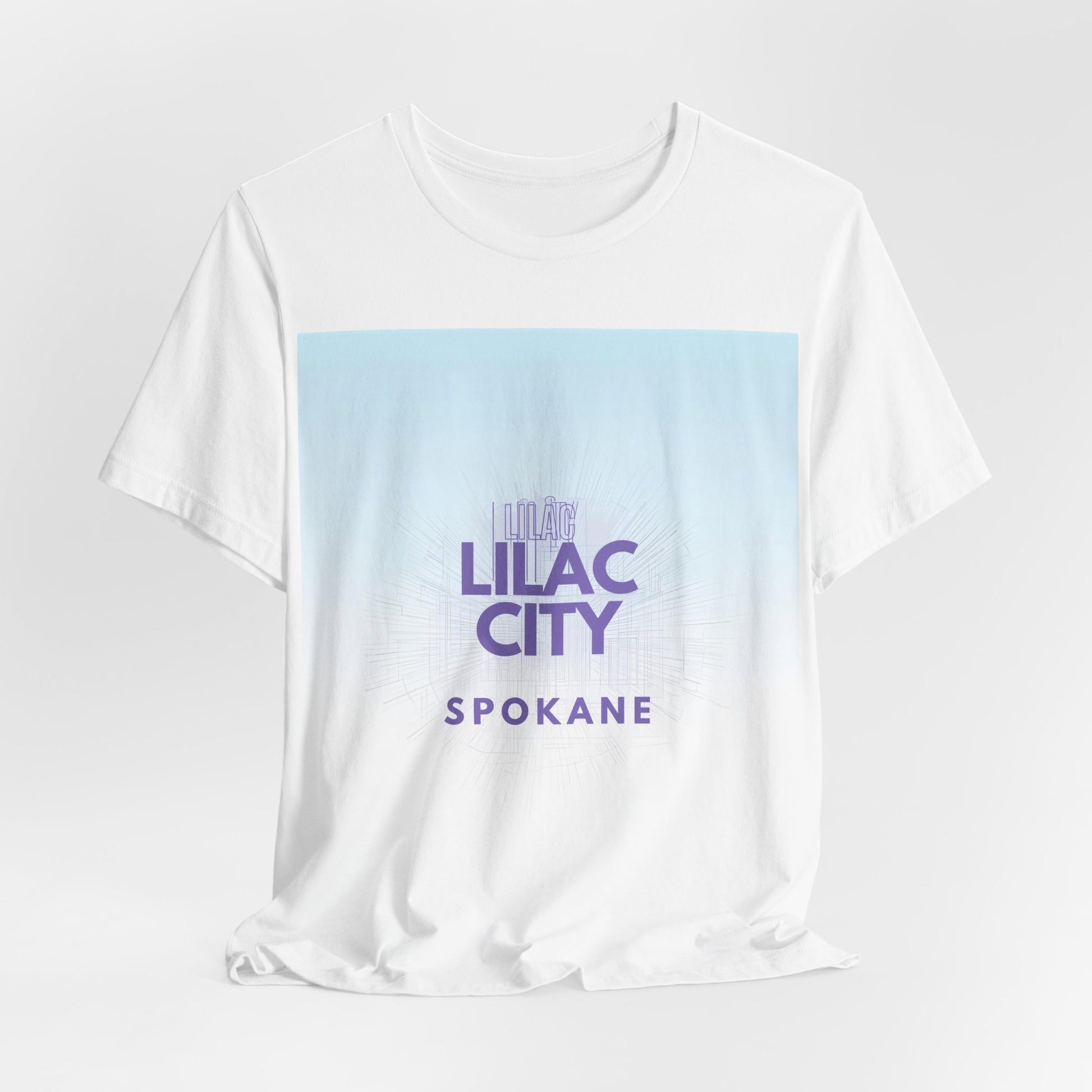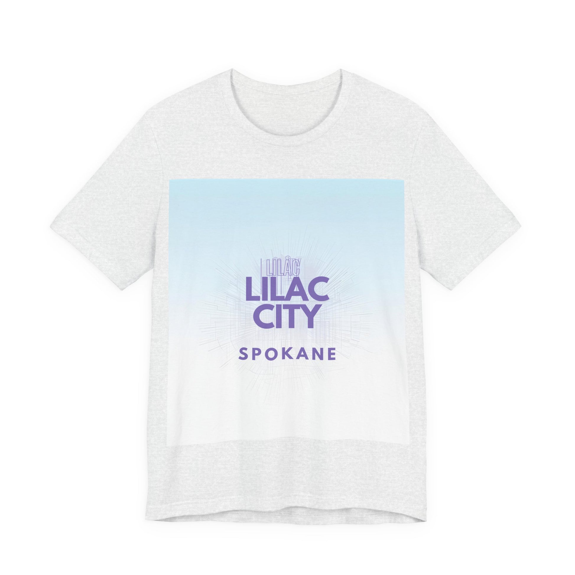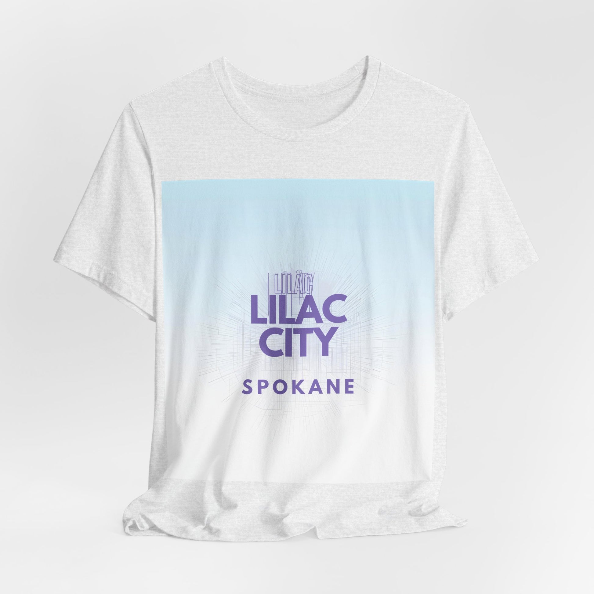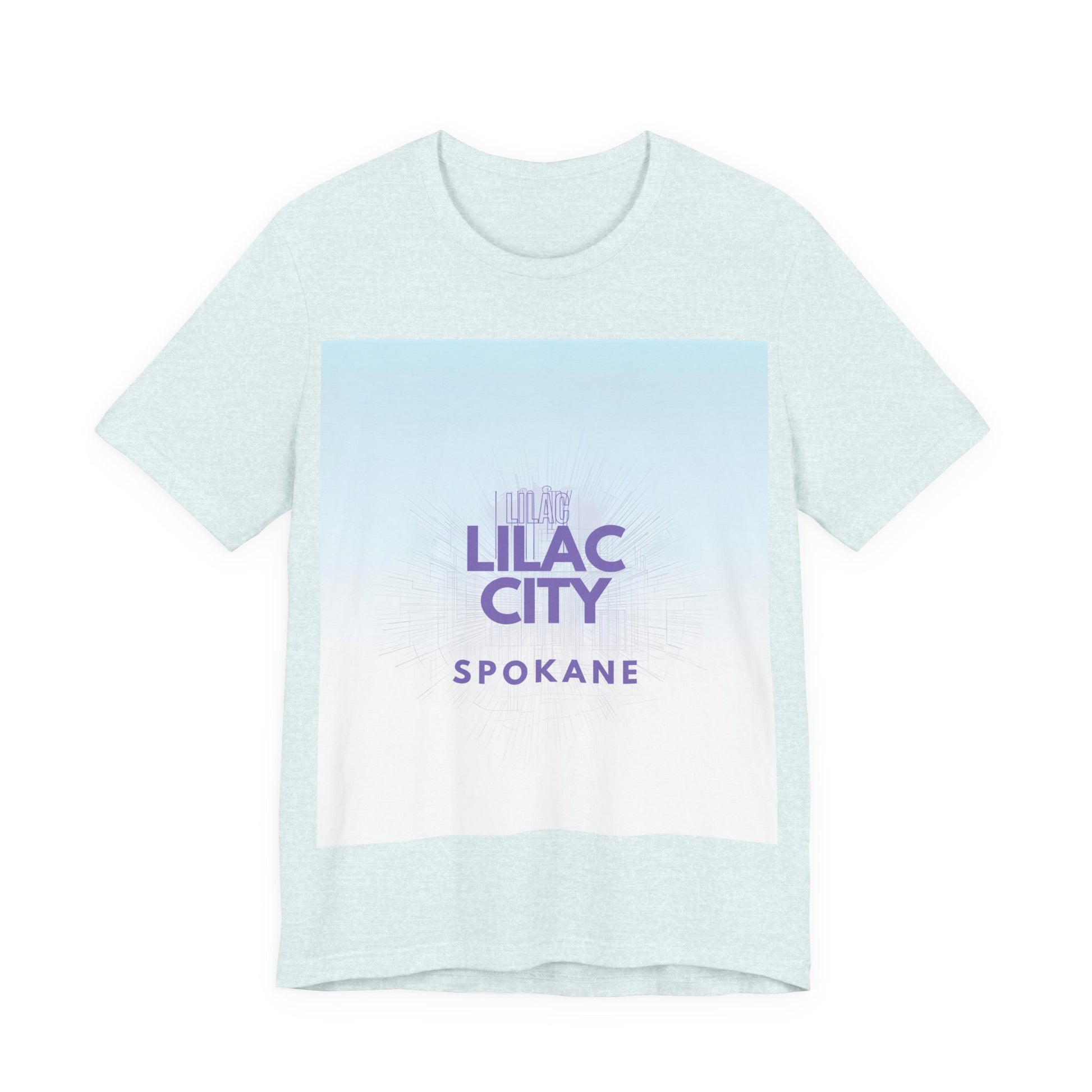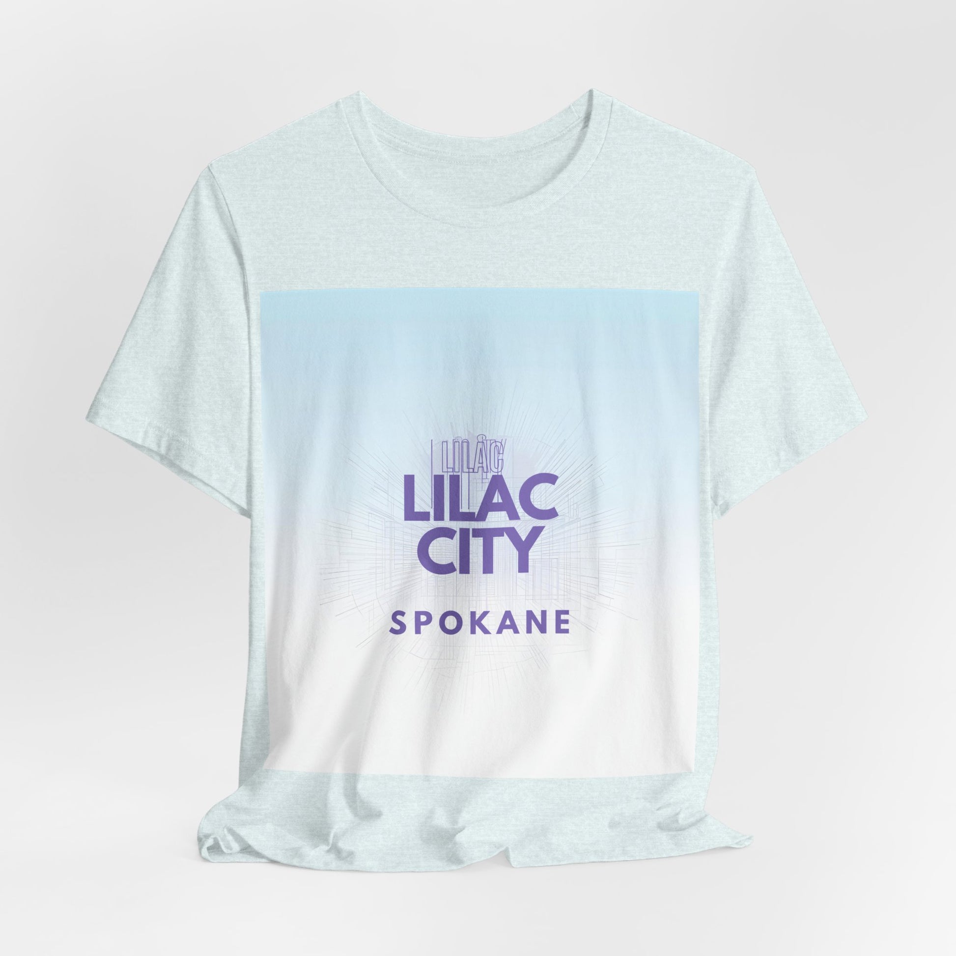 A soft, breathable tee that channels the gentle dusk light of the Pacific Northwest. The front shows a gradient wash from pale sky blue into soft white with “Lilac City” in muted purple and “SPOKANE” beneath — a subtle, city-pride look that reads calm and confident. Lightweight Airlume combed and ring-spun cotton keeps the shirt breathable and easy to layer. Ribbed collar, side seams and shoulder tape keep the silhouette neat wear after wear. Tear-away label and responsibly made construction make it comfortable to wear all day — whether you're wandering downtown, grabbing coffee after a shift, or meeting friends for an evening stroll.