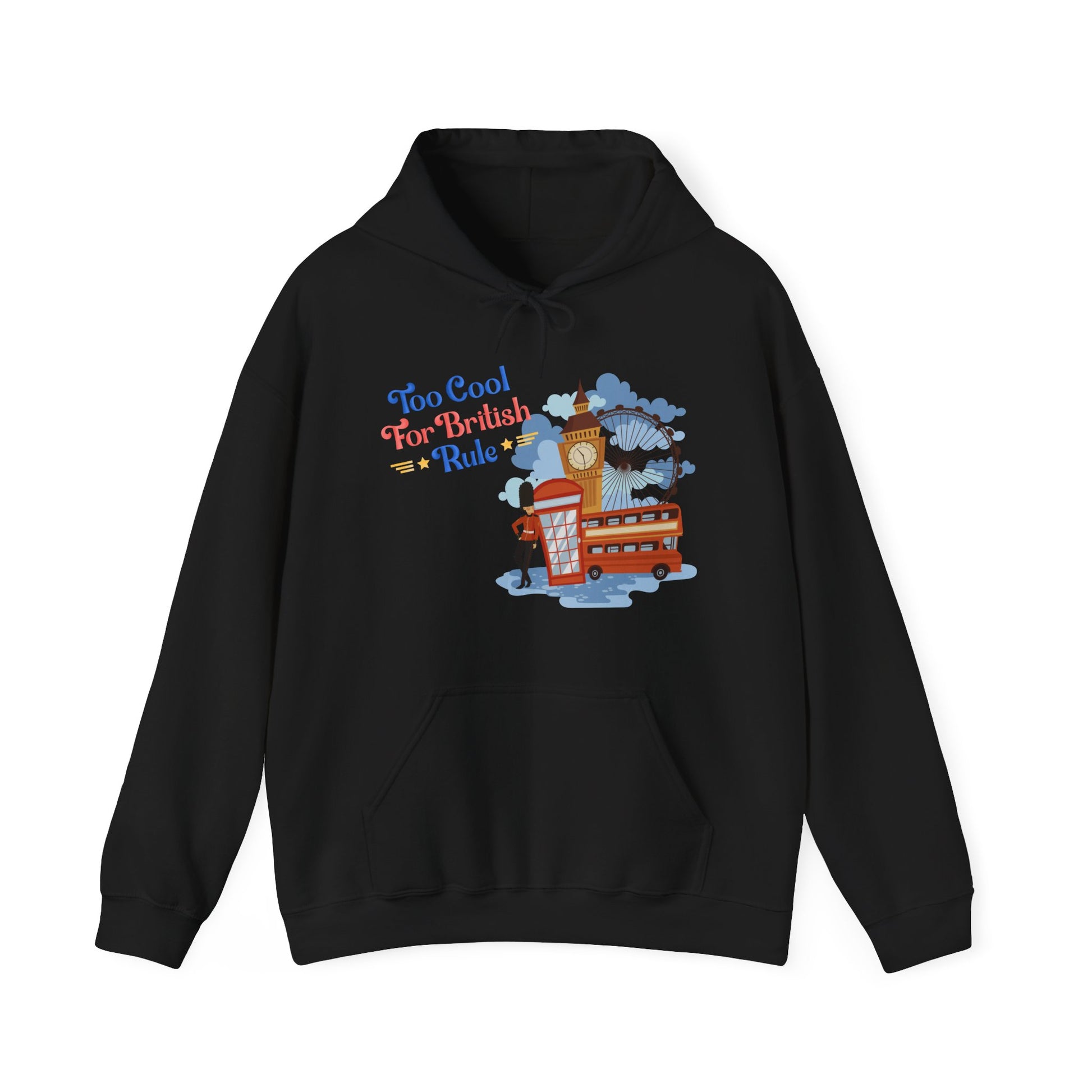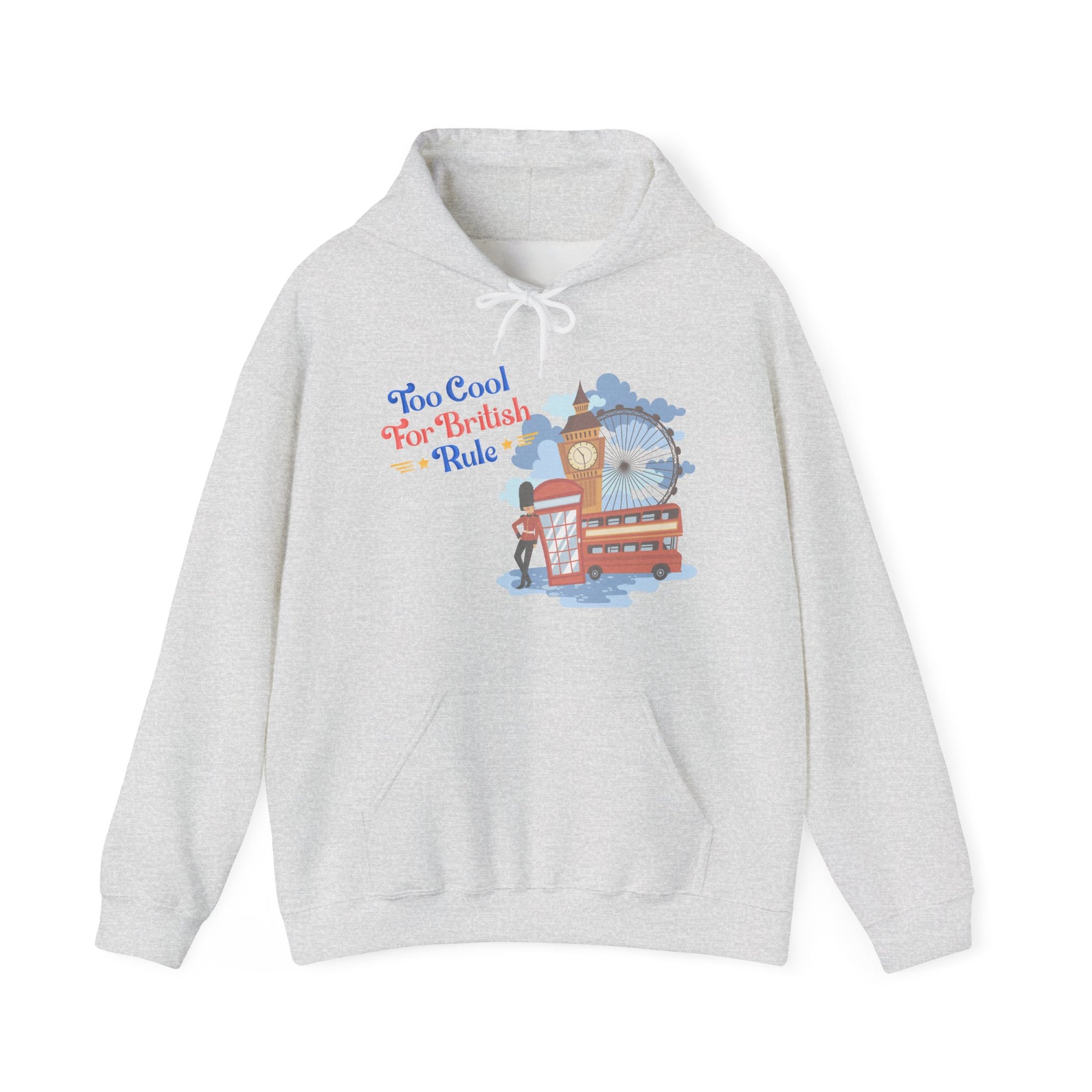 Make a bold statement with the Too Cool for British Rule Hoodie. Perfect for travelers, casual outings, or gifting, this cozy pullover combines comfort with playful, British-inspired design. Crafted from a soft and durable heavy blend fabric, it provides warmth and a classic hoodie fit, making it ideal for everyday wear or as a thoughtful gift for those who love unique and themed apparel.