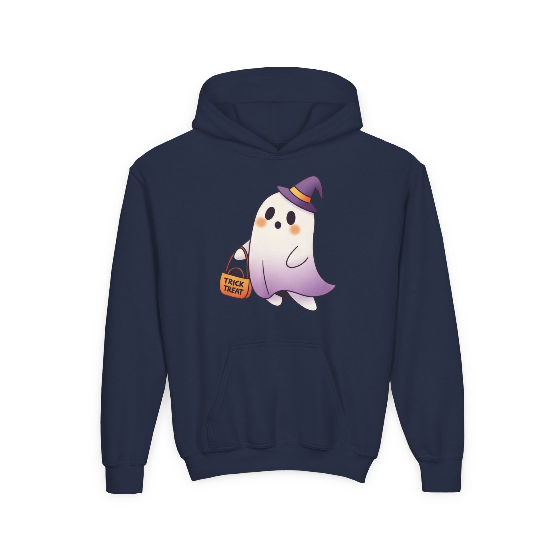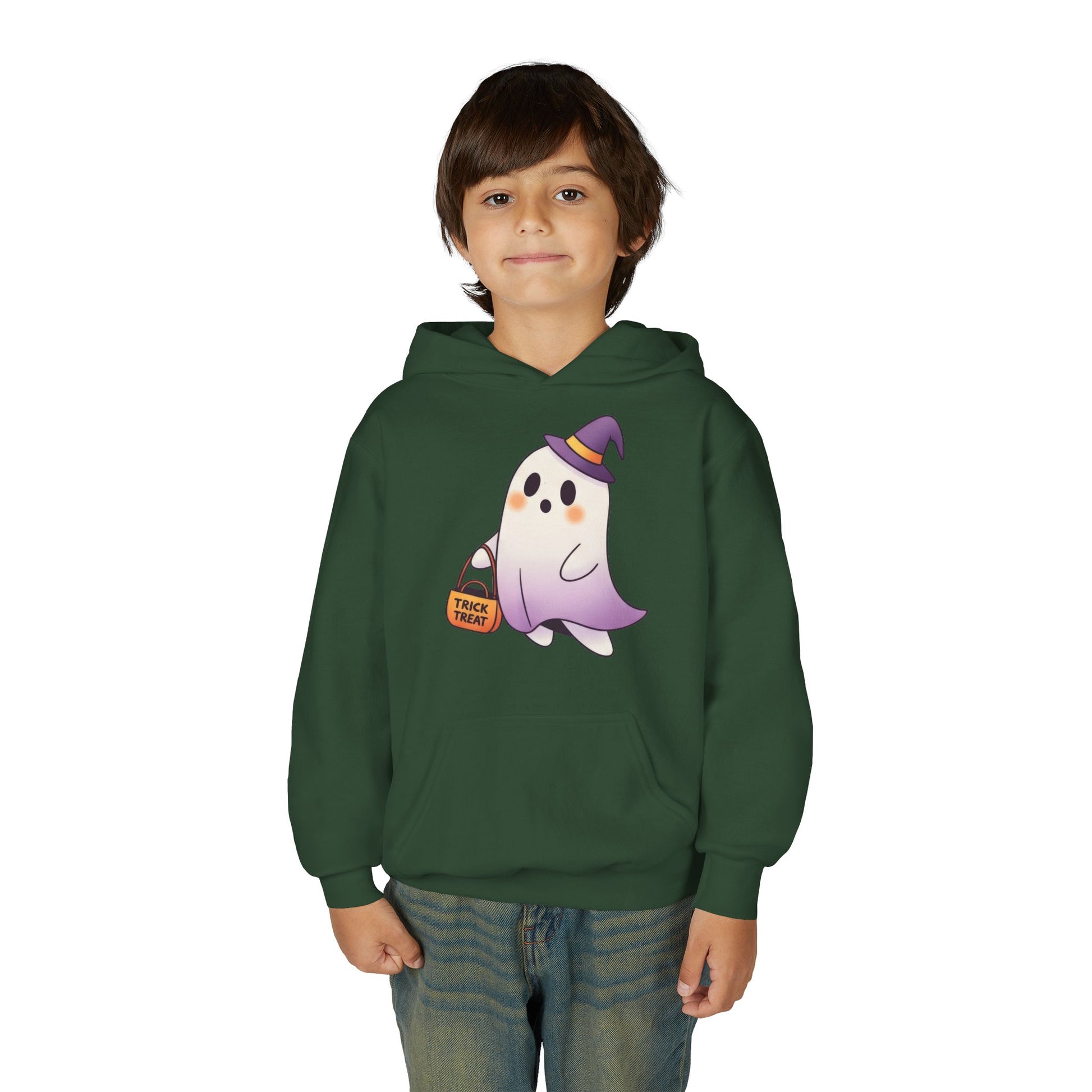Bring spooky fun to fall with the Youth Ghost Hoodie for Halloween. This cozy sweatshirt features playful ghost-themed graphics perfect for trick-or-treating, fall festivities, or casual Halloween wear. Its soft and comfortable fabric keeps kids warm while adding a festive touch to their wardrobe. Ideal as a Halloween costume or a fun gift, this hoodie combines comfort, style, and holiday spirit for young Halloween enthusiasts.